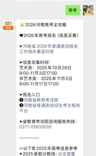 温馨提示:微信搜索公众号【开封本地宝】,关注后在对话框回复【高考】获取2026河南/开封高考全攻略、高考报名时间、报名入口、报名指南、高考考试安排、考试时间、成绩查询等(持续更新中)